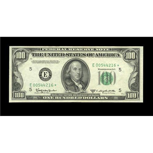 Fr. 2161-E* $100 1950D Federal Reserve Note. Very Choic Fr. 2161-E* $100 1950D Federal Reserve Note.