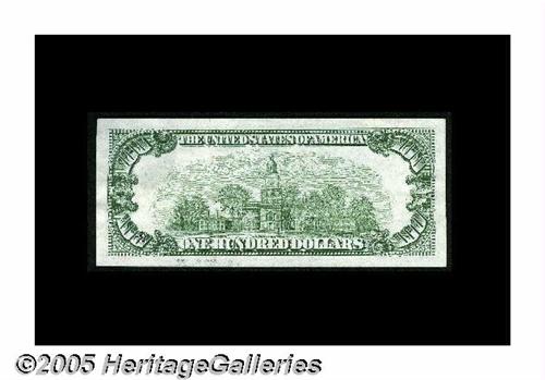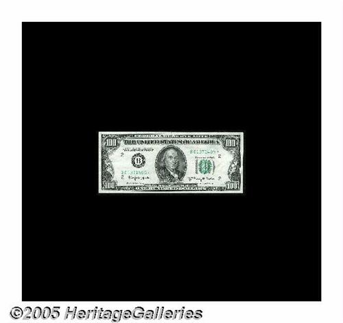 <B>Fr. 2162-B* $100 1950E Federal Reserve Note. About Uncirculated.</B></I><BR>This short series extended to only three districts. As a star note anything at all from the 1950E series is a stretch to locate. In this state of preservation it can only be regarded as a modern treasure. Bid accordingly.