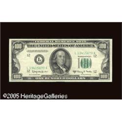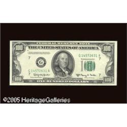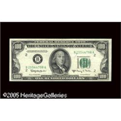 <B>Fr. 2162-B $100 1950E Federal Reserve Note. Extremely Fine, teller stamp corner.</B></I><BR><B>Fr. 2162-G $100 1950E Federal Reserve Note. About Uncirculated.</B></I><BR><B>Fr. 2162-L $100 1950E Federal Reserve Note. Very Fine-Extremely Fine.</B></I><BR>Only the New York, Chicago, and San Francisco districts issued this series. This was the last series printed from the wet intaglio method when the BEP brought out of mothballs the old presses to handle the need for more paper money caused by the inflation of the mid-1960s. This is a tough note to track down, with the Chicago printing being around 20% of the second least district, San Francisco.<BR> 3 notes Lot:16442