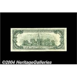 Fr. 2162-G $100 1950E Federal Reserve Note. Choice About Uncirculated.The 1950E series is a notoriously difficult issue, and of only three districts for which notes were printed, the Chicago district is by far the scarcest with only 576,000 notes printed as compared with more than 3 million from New York and more than 2.7 million from San Francisco. This note falls just short of a CU grade, with only a light diagonal fold across the upper left corner. <BR><BR><B>Important notice:</B> Heritage usually auctions material at the rate of 200-250 lots per hour. On some occasions eBay Live bid software or the Internet may not be able to keep up with the pace of the auction. We recommend placing a realistic absentee bid now as insurance to avoid disappointment. Occasionally the auctioneer may eliminate or reject an eBay Live bid, and the auctioneer may also reopen a lot after the close of the eBay live bidding (usually because we missed an audience bid), and may reject your bid even if it shows you as the winning bidder. By bidding via eBay Live, you agree that Heritage may award the lot to another bidder at its sole discretion under the circumstances described above or any other reasonable circumstances. Since eBay bids are not shown to us until we open the lot on the floor, we treat those bids just like floor bids. In most cases the floor responds before the eBay bid is presented to us, due to Internet lag time, so for consistency we have made it a policy that floor bids are always considered first over tie eBay live bids. Also please note that all Heritage lots purchased through eBay Live carry a 20% Buyer's Premium. Please make sure you read the Terms and Conditions before you bid. <BR><BR><B>IMPORTANT ANNOUNCEMENT ABOUT RESERVES:</B> Heritage now divulges all reserves on its web site 7 days before every auction. If you want to know whether the reserve on this lot has been met, and if not, what the reserve amount is, please visit this lot page on the HeritageCoin.com web site, or email: bid@HeritageGalleries.com