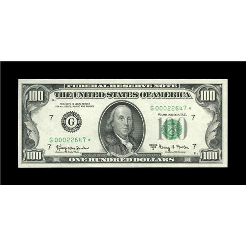 Fr. 2163-G* $100 1963A Federal Reserve Note. Gem Crisp Fr. 2163-G* $100 1963A Federal Reserve Note.