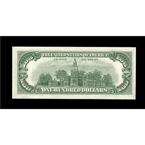 <B>Fr. 2163-G* $100 1963A Federal Reserve Note. Gem Crisp Uncirculated.</B></I><BR>There is a miniscule amount of handling, but this well centered and unmolested piece easily carries the full Gem grade.