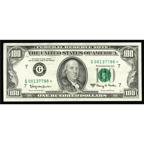 Fr. 2163-G* $100 1963A Federal Reserve Note. Gem Crisp Fr. 2163-G* $100 1963A Federal Reserve Note.