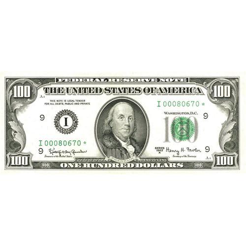 <B>Fr. 2163-I* $100 1963A Federal Reserve Note. About Uncirculated.</B></I><BR>Embossing is noticed on this Minneapolis Star that has a light center fold.