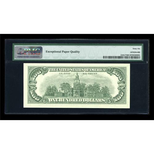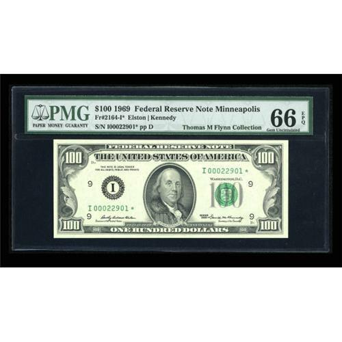 <B>Fr. 2164-I* $100 1969 Federal Reserve Note. PMG Gem Uncirculated 66 EPQ.</B></I><BR> A flaming gem of a star and one which is scarce as well, with only 64,000 pieces printed.<BR><I>From The Thomas M. Flynn Collection</B></I><BR><BR><b>Shipping:</b> Coins & Currency (<a target="_blank" href="http://www.heritageauctions.com/common/shipping.php">view shipping information</a>)