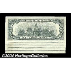 Fr. 2166-B $100 1969C Federal Reserve Notes. Five Consecutive Examples. Choice Crisp Uncirculated.A wonderful group of five consecutive C-notes, each Gem but for a tiny bit of handling. Nice original groups of these "small head" Ben Franklin's aren't seen with any regularity anymore. 5 Notes <BR><BR><B>Important notice:</B> Heritage usually auctions material at the rate of 200-250 lots per hour. On some occasions eBay Live bid software or the Internet may not be able to keep up with the pace of the auction. We recommend placing a realistic absentee bid now as insurance to avoid disappointment. Occasionally the auctioneer may eliminate or reject an eBay Live bid, and the auctioneer may also reopen a lot after the close of the eBay live bidding (usually because we missed an audience bid), and may reject your bid even if it shows you as the winning bidder. By bidding via eBay Live, you agree that Heritage may award the lot to another bidder at its sole discretion under the circumstances described above or any other reasonable circumstances. Since eBay bids are not shown to us until we open the lot on the floor, we treat those bids just like floor bids. In most cases the floor responds before the eBay bid is presented to us, due to Internet lag time, so for consistency we have made it a policy that floor bids are always considered first over tie eBay live bids. Also please note that all Heritage lots purchased through eBay Live carry a 20% Buyer's Premium. Please make sure you read the Terms and Conditions before you bid. <BR><BR><B>IMPORTANT ANNOUNCEMENT ABOUT RESERVES:</B> Heritage now divulges all reserves on its web site 7 days before every auction. If you want to know whether the reserve on this lot has been met, and if not, what the reserve amount is, please visit this lot page on the HeritageCoin.com web site, or email: bid@HeritageGalleries.com