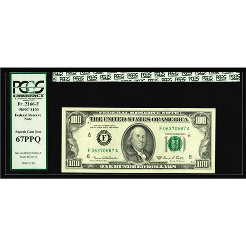 <B>Fr. 2166-F $100 1969C Federal Reserve Note. PCGS Superb Gem New 67PPQ.</B></I><BR>Here is a nifty C-note that has enormous margins.