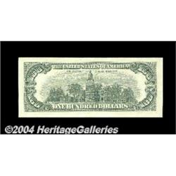 Fr. 2166-L* $100 1969-C Federal Reserve Note. Choice Crisp Uncirculated.A very scarce late issue star in a very seldom seen series for stars. <BR><BR><B>Important notice:</B> Heritage usually auctions material at the rate of 200-250 lots per hour. On some occasions eBay Live bid software or the Internet may not be able to keep up with the pace of the auction. We recommend placing a realistic absentee bid now as insurance to avoid disappointment. Occasionally the auctioneer may eliminate or reject an eBay Live bid, and the auctioneer may also reopen a lot after the close of the eBay live bidding (usually because we missed an audience bid), and may reject your bid even if it shows you as the winning bidder. By bidding via eBay Live, you agree that Heritage may award the lot to another bidder at its sole discretion under the circumstances described above or any other reasonable circumstances. Since eBay bids are not shown to us until we open the lot on the floor, we treat those bids just like floor bids. In most cases the floor responds before the eBay bid is presented to us, due to Internet lag time, so for consistency we have made it a policy that floor bids are always considered first over tie eBay live bids. Also please note that all Heritage lots purchased through eBay Live carry a 20% Buyer's Premium. Please make sure you read the Terms and Conditions before you bid. <BR><BR><B>IMPORTANT ANNOUNCEMENT ABOUT RESERVES:</B> Heritage now divulges all reserves on its web site 7 days before every auction. If you want to know whether the reserve on this lot has been met, and if not, what the reserve amount is, please visit this lot page on the HeritageCoin.com web site, or email: bid@HeritageGalleries.com
