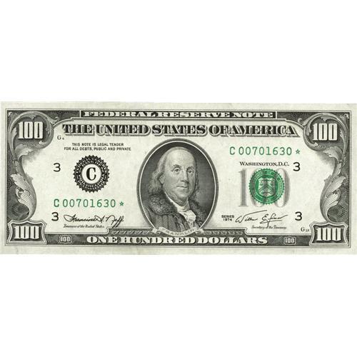 <B>Fr. 2167-C $100 1974 Federal Reserve Note. Choice Crisp Uncirculated.</B></I><BR>Examine the paper on this pack fresh note to see what real originality is. An unquestioned Gem but for a right to left centering shift on the face...