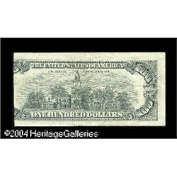 Fr. 2167-L* $100 1974 Federal Reserve Note. Very Fine. <B>Fr. 2167-L* $100 1974 Federal Reserve Note. Very Fine.</B></I> A very enigmatic note, as it bears a pair of mismatched star numbers, L02077406* and L02077926*. Unfortunately, what would have been a classic mismatched star serial example is marred by the fact that the right 15% of the note is missing. If the note were whole, it would clearly be a multi-thousand dollar rarity. As it now lays, we will offer it without estimate and let our bidders decide.<BR><I>From the collection of Stanley M. Zurawski, Jr.</B></I> <BR><BR><B>Important notice:</B> Heritage usually auctions material at the rate of 200-250 lots per hour. On some occasions eBay Live bid software or the Internet may not be able to keep up with the pace of the auction. We recommend placing a realistic absentee bid now as insurance to avoid disappointment. Occasionally the auctioneer may eliminate or reject an eBay Live bid, and the auctioneer may also reopen a lot after the close of the eBay live bidding (usually because we missed an audience bid), and may reject your bid even if it shows you as the winning bidder. By bidding via eBay Live, you agree that Heritage may award the lot to another bidder at its sole discretion under the circumstances described above or any other reasonable circumstances. Since eBay bids are not shown to us until we open the lot on the floor, we treat those bids just like floor bids. In most cases the floor responds before the eBay bid is presented to us, due to Internet lag time, so for consistency we have made it a policy that floor bids are always considered first over tie eBay live bids. Also please note that all Heritage lots purchased through eBay Live carry a 20% Buyer's Premium. Please make sure you read the Terms and Conditions before you bid. This lot is being auctioned in conjunction with a live floor auction by Heritage Galleries & Auctioneers. All final auction and invoice information will be supplied by Heritage Galleries & Auctioneers, and all other information should be considered preliminary. Lot:16095