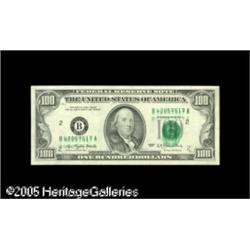 <B>Fr. 2168-B $100 1977 Federal Reserve Note Choice Crisp Uncirculated.</B></I> The seal and serial numbers are triple printed on this very rare and most dramatic of errors. Lot:15228