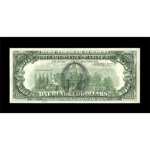 <B>Fr. 2168-B $100 1977 Federal Reserve Note. Very Choice Crisp Uncirculated.</B></I><BR> This full offset features the entire face design on back. The paper is exceptional with deep embossing and solid margins for the grade.<BR><BR><b>Shipping:</b> Coins & Currency (<a target="_blank" href="http://www.heritageauctions.com/common/shipping.php">view shipping information</a>)