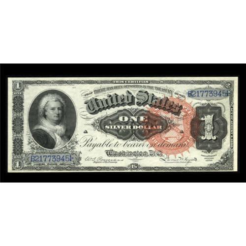 <B>Fr. 217 $1 1886 Silver Certificate Choice New.</B></I> The bottom margin is a bit close, particularly at its right end. Save for that minor anomaly, this Large Red Seal Martha would be a Superb Gem. The originality is pronounced, the colors simply perfect, and the other three margins fully broad.<BR><BR><b>Shipping:</b> Coins & Currency (<a target="_blank" href="http://www.heritageauctions.com/common/shipping.php">view shipping information</a>)
