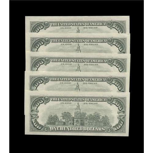 Fr. 2173-B $100 1990 Federal Reserve Notes. Five Cons Fr. 2173-B $100 1990 Federal Reserve Notes. Fi
