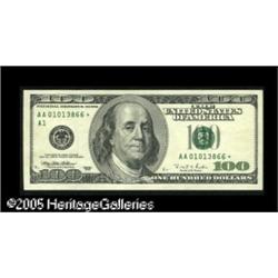 <B>Fr. 2175-A* $100 1996 Federal Reserve Note. Extremely Fine-About Uncirculated.</B></I><BR>This drastic Star rarity will most certainly create quite a stir among collectors in the error community. This example of a high denomination Star sports a completely blank back . Expect some stiff competition if you plan to add this beauty to your collection. Lot:15091