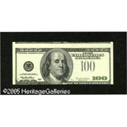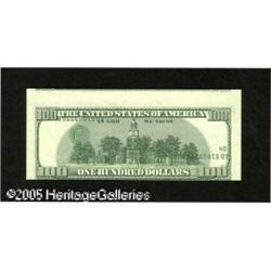 <B>Fr. 2175-D $100 1996 Federal Reserve Note. Extremely Fine.</B></I><BR>The third printing on this 1996 $100 is on the reverse and inverted. The note also has the cutting error that goes along with inverted third printings. A rare error particularly on a $100. Lot:15181
