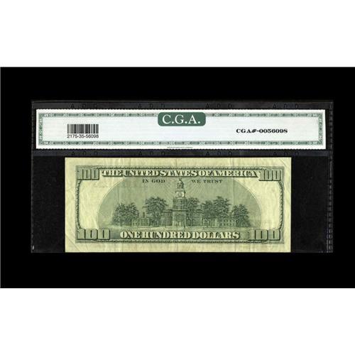 Fr. 2175-G $100 1996 FRN CGA Very Fine 35 Solid 6'' Fr. 2175-G $100 1996 Federal Reserve Note. CGA V