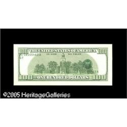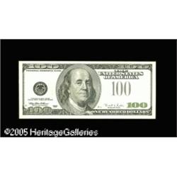 <B>Fr. 2175-G $100 1996 Federal Reserve Note. Choice Crisp Uncirculated.</B></I> Gem centering and paper surfaces, but just a touch too much handling for Gem status on this fresh note with the third printing on the reverse. Lot:15182