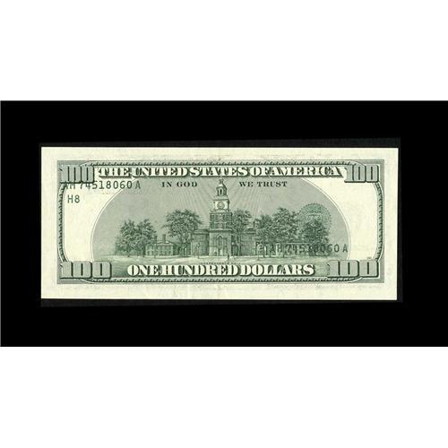 <B>Fr. 2175-H $100 1996 Federal Reserve Note. Extremely Fine-About Uncirculated.</B></I><BR>The third printing is on the back of this well embossed $100.<BR><BR><b>Shipping:</b> Coin/Currency (<a target="_blank" href="http://www.heritageauctions.com/common/shipping.php">view shipping information</a>)