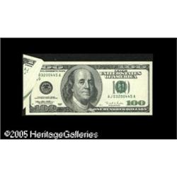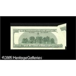 <B>Fr. 2175-J $100 1996 Federal Reserve Note. Gem New.</B></I><BR>The upper left of this new hundred was folded over during all the printing leaving a large butterfly with a broad blank area on the face and back. Lot:15299