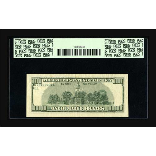 Fr. 2175-K $100 1996 Federal Reserve Note. PCGS Very Fi