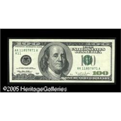 <B>Fr. 2175-K $100 1996 Federal Reserve Note. Very Choice Crisp Uncirculated.</B></I><BR>This is a gorgeous example of a completely blank reverse high denomination error. Lot:16474