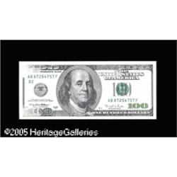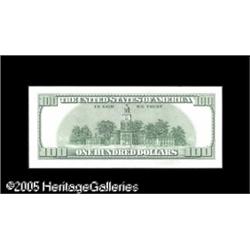 <B>Fr. 2176-B $100 1996 Federal Reserve Note. Gem New.</B></I><BR>This new $100 has several weakly printed areas on the face due to missing magnetic ink. Lot:15369