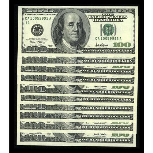 <B>Fr. 2177-A-D; F; G; I-L $100 2001 Federal Reserve Notes. Gem Crisp Uncirculated.</B></I><BR> These $100s have wide margins and nice centering.<BR><I>From The Thomas M. Flynn Collection</B></I><BR><BR><b>Shipping:</b> Coins & Currency (<a target="_blank" href="http://www.heritageauctions.com/common/shipping.php">view shipping information</a>)