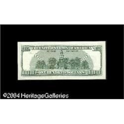 Fr. 2177-F $100 2001 Federal Reserve Note. Choice About <B>Fr. 2177-F $100 2001 Federal Reserve Note. Choice About Uncirculated.</B></I><BR>A single vertical fold is present on this low serial number star that bears number CF00000144*. <BR><BR><B>Important notice:</B> Heritage usually auctions material at the rate of 200-250 lots per hour. On some occasions eBay Live bid software or the Internet may not be able to keep up with the pace of the auction. We recommend placing a realistic absentee bid now as insurance to avoid disappointment. Occasionally the auctioneer may eliminate or reject an eBay Live bid, and the auctioneer may also reopen a lot after the close of the eBay live bidding (usually because we missed an audience bid), and may reject your bid even if it shows you as the winning bidder. By bidding via eBay Live, you agree that Heritage may award the lot to another bidder at its sole discretion under the circumstances described above or any other reasonable circumstances. Since eBay bids are not shown to us until we open the lot on the floor, we treat those bids just like floor bids. In most cases the floor responds before the eBay bid is presented to us, due to Internet lag time, so for consistency we have made it a policy that floor bids are always considered first over tie eBay live bids. Also please note that all Heritage lots purchased through eBay Live carry a 20% Buyer's Premium. Please make sure you read the Terms and Conditions before you bid. This lot is being auctioned in conjunction with a live floor auction by Heritage Galleries & Auctioneers. All final auction and invoice information will be supplied by Heritage Galleries & Auctioneers, and all other information should be considered preliminary. Lot:16480