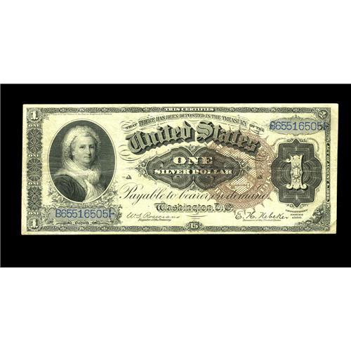 <B>Fr. 220 $1 1886 Silver Certificate Fine-Very Fine.</B></I> Only one pinhole can be found on this Martha.