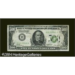 Fr. 2200-B $500 1928 Federal Reserve Note. Extremely Fi <B>Fr. 2200-B $500 1928 Federal Reserve Note. Extremely Fine-About Uncirculated.</B></I><BR>Here is a bright, high end circulated example. <BR><BR><B>Important notice:</B> Heritage usually auctions material at the rate of 200-250 lots per hour. On some occasions eBay Live bid software or the Internet may not be able to keep up with the pace of the auction. We recommend placing a realistic absentee bid now as insurance to avoid disappointment. Occasionally the auctioneer may eliminate or reject an eBay Live bid, and the auctioneer may also reopen a lot after the close of the eBay live bidding (usually because we missed an audience bid), and may reject your bid even if it shows you as the winning bidder. By bidding via eBay Live, you agree that Heritage may award the lot to another bidder at its sole discretion under the circumstances described above or any other reasonable circumstances. Since eBay bids are not shown to us until we open the lot on the floor, we treat those bids just like floor bids. In most cases the floor responds before the eBay bid is presented to us, due to Internet lag time, so for consistency we have made it a policy that floor bids are always considered first over tie eBay live bids. Also please note that all Heritage lots purchased through eBay Live carry a 20% Buyer's Premium. Please make sure you read the Terms and Conditions before you bid. This lot is being auctioned in conjunction with a live floor auction by Heritage Galleries & Auctioneers. All final auction and invoice information will be supplied by Heritage Galleries & Auctioneers, and all other information should be considered preliminary. Lot:16482