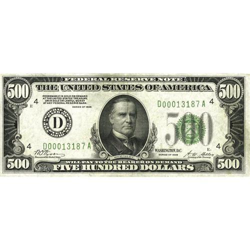 <B>Fr. 2200-D $500 1928 Federal Reserve Note. Extremely Fine-About Uncirculated.</B></I><BR>Healthy edges and paper are viewed on this lightly circulated example.