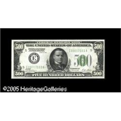<B>Fr. 2200-E $500 1928 Federal Reserve Note. Choice Crisp Uncirculated.</B></I><BR>One of the scarcer districts, and very close to the gem grade save for a tight right margin. Lot:16479