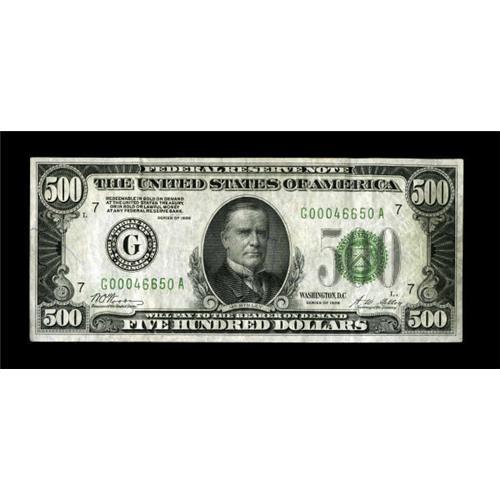 <B>Fr. 2200-G $500 1928 Federal Reserve Note. Very Fine.</B></I><BR> A few stray ink marks, teller stamps and pinholes do little to take away from this crisp, colorful example.<BR><I>From The Walla Walla Collection</B></I><BR><BR><b>Shipping:</b> Coins & Currency (<a target="_blank" href="http://www.heritageauctions.com/common/shipping.php">view shipping information</a>)