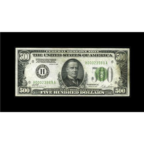 <B>Fr. 2200-H $500 1928 Federal Reserve Note. Very Fine-Extremely Fine.</B></I><BR>A nice problem free 1928 example with excellent color and eye appeal.