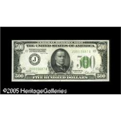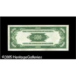 <B>Fr. 2200-J $500 1928 Federal Reserve Note. Choice About Uncirculated.</B></I><BR>There is one extremely well hidden center fold, but otherwise this 1928 $500 is fully new. Lot:16486