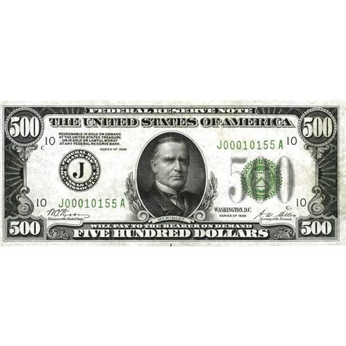<B>Fr. 2200-J $500 1928 Federal Reserve Note. Extremely Fine.</B></I><BR>Bright paper and light handling are merits of this KC $500.