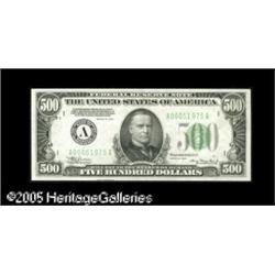 <B>Fr. 2201-A $500 1934 Federal Reserve Note. Crisp Uncirculated.</B></I><BR>Well centered and bright, but lacking the kind of embossing we'd like to see for a higher grade. Lot:16489