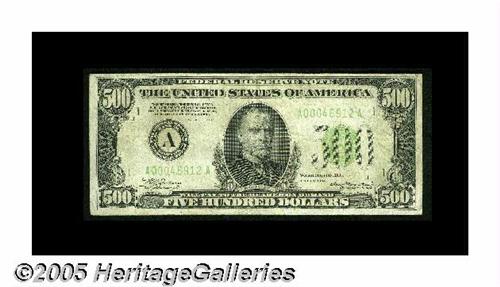 <B>Fr. 2201-A $500 1934 Federal Reserve Note. Fine-Very Fine.</B></I><BR>A problem-free circulated high denomination example.
