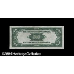 Fr. 2201-B $500 1934 Federal Reserve Note. About Uncirc <B>Fr. 2201-B $500 1934 Federal Reserve Note. About Uncirculated.</B></I><BR>A decently centered high end example with just a trace of counting soil. <BR><BR><B>Important notice:</B> Heritage usually auctions material at the rate of 200-250 lots per hour. On some occasions eBay Live bid software or the Internet may not be able to keep up with the pace of the auction. We recommend placing a realistic absentee bid now as insurance to avoid disappointment. Occasionally the auctioneer may eliminate or reject an eBay Live bid, and the auctioneer may also reopen a lot after the close of the eBay live bidding (usually because we missed an audience bid), and may reject your bid even if it shows you as the winning bidder. By bidding via eBay Live, you agree that Heritage may award the lot to another bidder at its sole discretion under the circumstances described above or any other reasonable circumstances. Since eBay bids are not shown to us until we open the lot on the floor, we treat those bids just like floor bids. In most cases the floor responds before the eBay bid is presented to us, due to Internet lag time, so for consistency we have made it a policy that floor bids are always considered first over tie eBay live bids. Also please note that all Heritage lots purchased through eBay Live carry a 20% Buyer's Premium. Please make sure you read the Terms and Conditions before you bid. This lot is being auctioned in conjunction with a live floor auction by Heritage Galleries & Auctioneers. All final auction and invoice information will be supplied by Heritage Galleries & Auctioneers, and all other information should be considered preliminary. Lot:16490