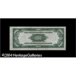 Fr. 2201-B $500 1934 Federal Reserve Note. Extremely <B>Fr. 2201-B $500 1934 Federal Reserve Note. Extremely Fine-About Uncirculated.</B></I><BR>A high end circulated example perfect for the collector looking for just one attractive high denomination specimen. <BR><BR><B>Important notice:</B> Heritage usually auctions material at the rate of 200-250 lots per hour. On some occasions eBay Live bid software or the Internet may not be able to keep up with the pace of the auction. We recommend placing a realistic absentee bid now as insurance to avoid disappointment. Occasionally the auctioneer may eliminate or reject an eBay Live bid, and the auctioneer may also reopen a lot after the close of the eBay live bidding (usually because we missed an audience bid), and may reject your bid even if it shows you as the winning bidder. By bidding via eBay Live, you agree that Heritage may award the lot to another bidder at its sole discretion under the circumstances described above or any other reasonable circumstances. Since eBay bids are not shown to us until we open the lot on the floor, we treat those bids just like floor bids. In most cases the floor responds before the eBay bid is presented to us, due to Internet lag time, so for consistency we have made it a policy that floor bids are always considered first over tie eBay live bids. Also please note that all Heritage lots purchased through eBay Live carry a 20% Buyer's Premium. Please make sure you read the Terms and Conditions before you bid. This lot is being auctioned in conjunction with a live floor auction by Heritage Galleries & Auctioneers. All final auction and invoice information will be supplied by Heritage Galleries & Auctioneers, and all other information should be considered preliminary. Lot:16491
