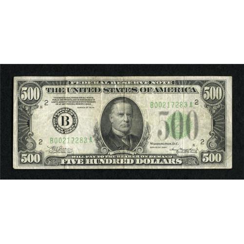 Fr. 2201-B $500 1934 Federal Reserve Note.