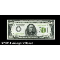 <B>Fr. 2201-C $500 1934 Federal Reserve Note. Light Green Seal. Gem Crisp Uncirculated.</B></I><BR>A beautiful and fully original example of the light green seal variety from this very scarce district, which had a total press run of only 31,200 pieces of the light and dark green seal varieties combined. If a nicer example exists from here, we certainly can not recall having encountered it. Lot:16495