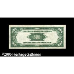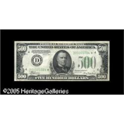 <B>Fr. 2201-D* $500 1934 Federal Reserve Note. Extremely Fine.</B></I><BR>A high grade star which is the nicest of the four examples listed by Steve Sullivan for this district. There is one pinhole and a bit of foxing on the reverse. Lot:16498