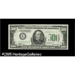 <B>Fr. 2201-E $500 1934 Federal Reserve Note. Choice Crisp Uncirculated.</B></I><BR>A fresh example that comes quite close to meriting the Gem designation. Lot:16499