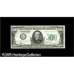 <B>Fr. 2201-G $500 1934 Federal Reserve Note. Choice Crisp Uncirculated.</B></I><BR>The embossing of the seal and serial numbers are especially evident on this unmolested example. Lot:16503
