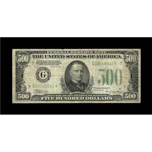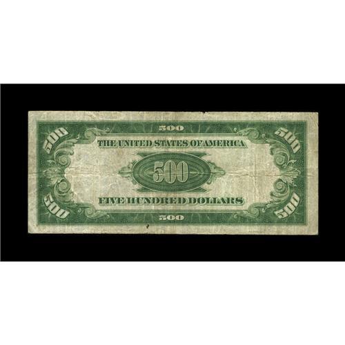 <B>Fr. 2201-G $500 1934 Federal Reserve Note. Very Fine.</B></I><BR>An attractive, though moderately circulated example of this high denom.<BR><BR><b>Shipping:</b> Coin/Currency (<a target="_blank" href="http://www.heritageauctions.com/common/shipping.php">view shipping information</a>)