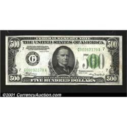 Fr. 2201-G $500 1934 Federal Reserve Note.<p>Extremely Fine.A high end note which looks new at first glance. Nice Extremely Fine-About Uncirculated. Important notice: We expect to be auctioning lots at the rate of 200-250 per hour. Sometimes eBay Premier live bid software cannot keep up with that pace, so we strongly recommend that you place a realistic proxy bid now as insurance to avoid disappointment. Also please note that all Heritage/CAA lots purchased through eBay Premier carry a 20% Buyer's Premium.