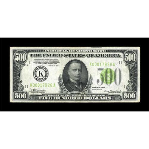 Fr. 2201-K $500 1934 Federal Reserve Note. Very