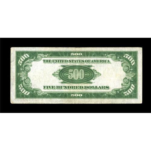 <B>Fr. 2201-K $500 1934 Federal Reserve Note Transitional Seal. Very Fine-Extremely Fine.</B></I><BR> The paper remains quite crisp despite the amount of handling sustained on this brightly inked note.<BR><BR><b>Shipping:</b> Coins & Currency (<a target="_blank" href="http://www.heritageauctions.com/common/shipping.php">view shipping information</a>)
